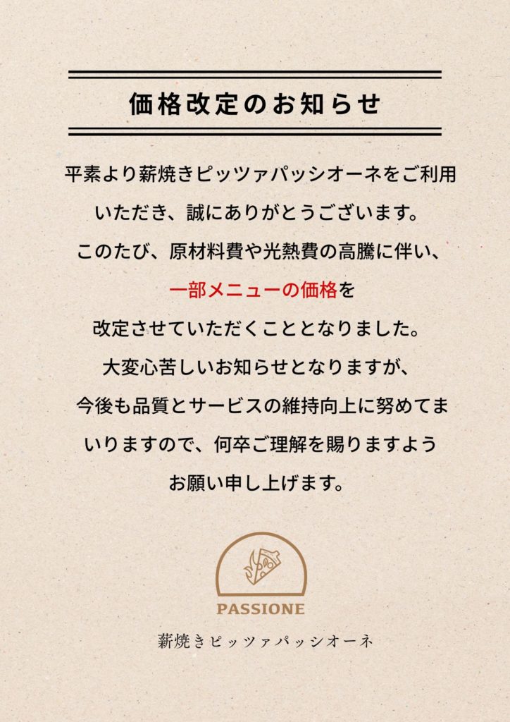 価格改定のお知らせ